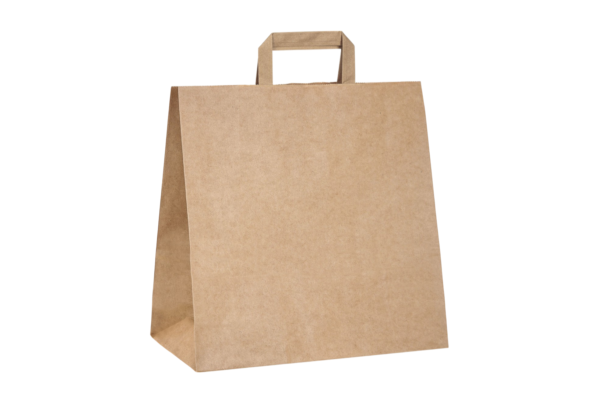 Натурална екологична хартиена торбичка с плоски дръжки, с най-различно предназначение. Всички продукти могат да бъдат изработени с печат и размер според нуждите на Вашия бизнес